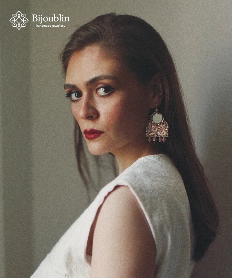 Handmade artistic earrings crafted with vibrant colors, detailed beadwork, and bold embroidered patterns. A stunning accessory that adds luxury, charm, and unique personality to your look.